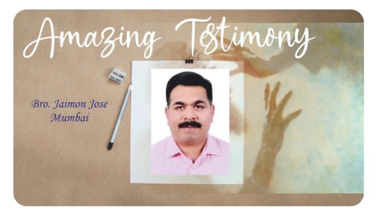 Greetings in our Lord Jesus Christ! We our blessed by Him who has created us, none other then Jesus Christ. I am going to share you all about my small testimony which will make your faith more strong in this life, as to introduce my self I am JAIMON native from Thiruvalla born and brought up in Mumbai, as in my childhood I should fall unconscious when I get a stomach pain but my parents didn’t know what was the diseases, as consulted to a doctor in Mumbai after many years took MRI scan, doctor came to know that I have a nerve problem and gave a tablet name Eptoin to eat for 3 years, I started eating that tablet continously 3 times a day, as I passed my 10th and as discussed ,my parents plan to send me to Kerala for a diploma course year 2000, as I was continuing my course, some times I had to go for vacation to my house in thiruvalla from Thalayolaparambu 35 Km, I missed to have my tablets many times, many off days I should play crickets near to my hostel, while playing I should feel blindness in my eyes and I can’t play I should feel that I am going to fall. And one day as I got a stomach pain I went in to the wash room and I felt down I hit my head, lips, both toes and many wounds in my body, As my mom’s request I had to travel back to Mumbai and again visited the same doctor,as doctors suggestion my tablets which i was having became high and less effect of doses ,because of missing to eat it while I go for vacation to my house. Doctor suggested to stopped the Eption tablet and asked to take a higher dose tablet named Valparin,i was back to Kerala and continued my studies and completed my diploma course, after that I came back to Mumbai and joined a company for experience morning from job and evening I started for my higher studies.As after 1 year I attended an interview and got a job offer for Saudi Arabia,within 15 days my visa and ticket arrived.while going I buyed 25 slips of valparin tablet which I was having,as you all know that we cannot travel with this much medicine in flight at thoes days that year 2004.i rolled all that tablets inside my jeans pants and took it. As God’s grace my bag was not been checked by the customs. As I reached Jeddah in Saudi Arabia, we had a congregation there and after 3 months a visiting pastor came there His name was Pastor Cherian an Appachan pastor . As one Friday worship was going on and the whole room was filled with Holy Spirit, I too was filled with Holy Spirit as Pastor Appachan came near me and kept his hand on my head and prayed and said to me in Holy Spirit, that son you have a disease and that disease God will cure you when u submit to Jesus Christ, soon I was filled with Holy Spirit and I submitted to our Lord. That evening when I came back to my camp where I stay with my friend and brother named Sam Mathew, I took all the 20 slips of my tablets and threw it in the dust bin. From that day till now it’s almost 14 years that disease didn’t troubled me. It was Jesus Christ blood which washed away my disease and my sin. I am a blessed one in Christ. I like to tell you all brothers and sisters, that be strong in faith and believe in Jesus, He is the only one who can save your sins and can wash all your diseases with his powerful blood. God bless you all. In Christ Bro Jaimon Jose New Panvel (Navi Mumbai)