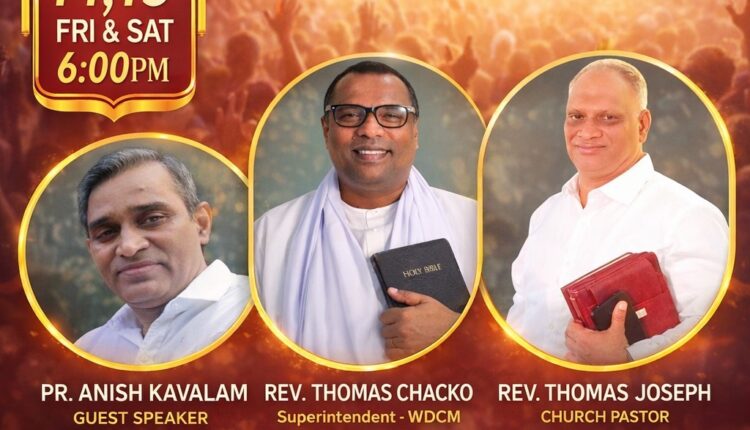 इस अवसर पर प्रभु में प्रसिद्ध सुसमाचार प्रचारक पास्टर अनीश कावालम (केरल) परमेश्वर के वचन की सेवा करेंगे। कार्यक्रम का उद्घाटन असेंबलीज़ ऑफ गॉड वेस्टर्न डिस्ट्रिक्ट काउंसिल ऑफ महाराष्ट्र के सुपरिंटेंडेंट रेव. थॉमस चाको करेंगे।
