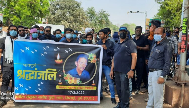 Christians protested in Durg – Bhilai Chhattisgarh state against the brutal murder of Sr.Pastor Yaalam Shankar of Bijapur district of Chhattisgarh State