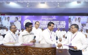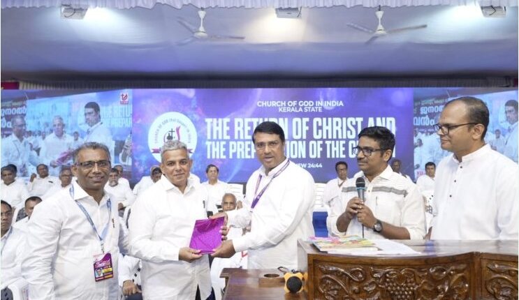 രുവല്ല: ശതാബ്ദിയുടെ ഭാഗമായി ഹോം മിഷന് ഡിപ്പാര്ട്ട്മെന്റിന്റെ പിന്തുണയോടെ മലയാളത്തിലും ഹിന്ദിയിലുമായി ചർച്ച് ഓഫ് ഗോഡ് സണ്ഡേസ്കൂള് ഡിപ്പാര്ട്ട്മെന്റ് പുറത്തിറക്കിയ മിഷന് സണ്ഡേസ്കൂള് സിലബസ് കേരളാ സ്റ്റേറ്റ് ഓവര്സീയര് പാസ്റ്റര് വൈ. റെജി, ഏഷ്യന് സൂപ്രണ്ട് റവ. സി.സി. തോമസിന് നല്കി പ്രകാശനം ചെയ്തു. ഹിന്ദി സിലബസ് സ്റ്റേറ്റ് ഓവര്സീയര്, സെന്റര് വെസ്റ്റ് റീജിയന് സണ്ഡേസ്കൂള് സെക്രട്ടറി പാസ്റ്റര് ഷിബു വര്ഗീസിന് പ്രഥമ കോപ്പി നല്കി പ്രകാശനം ചെയ്തു.