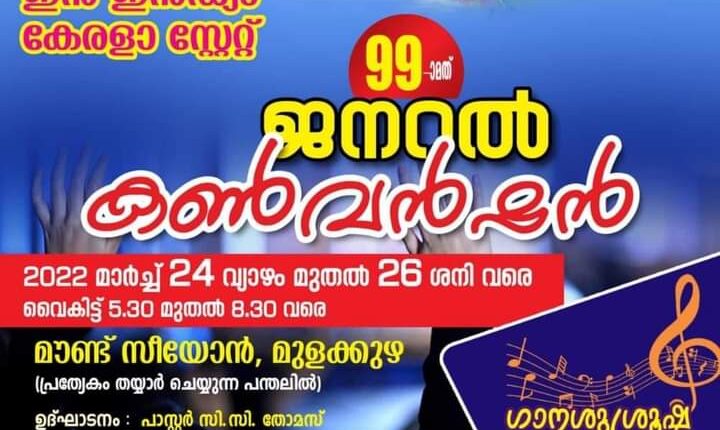 ചര്‍ച്ച് ഓഫ് ഗോഡ് കേരളാ സ്‌റ്റേറ്റ്  99-ാമത് ജനറല്‍ കണ്‍വന്‍ഷന്‍ ഇന്ന് ആരംഭിക്കും