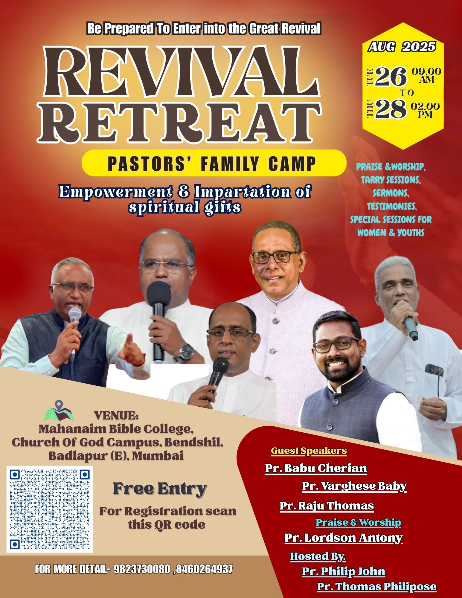 കൂടുതൽ വിവരങ്ങൾക്ക് ബന്ധപ്പെടേണ്ട മൊബൈൽ നമ്പർ : പാസ്റ്റർ ഫിലിപ് ജോൺ (9823730080), പാസ്റ്റർ തോമസ് ഫിലിപ്പോസ് (8460264937)