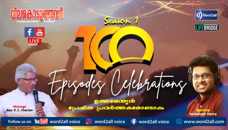 വിലകൊടുത്തവർ’ എന്ന ഉത്തരേന്ത്യൻ പ്രേഷിത പ്രവർത്തനാനുഭവ പരമ്പരയുടെ നൂറു എപ്പിസോഡുകൾ അടങ്ങിയ സീസൺ വണ്ണിന് സമാപനമായി